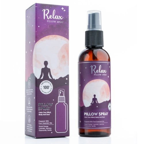 Prepared with Pure Essential Oils sweet orange, lavender, jasmine, chamomile and vanilla. Experience tranquility with Aromatherapy Relax pillow spray, housed in an elegant amber-coloured bottle.